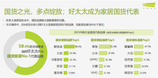 報告顯示,消費(fèi)者普遍認(rèn)同的國貨家居代表品牌有好太太、水星家紡、歐派、富安娜與九牧等。