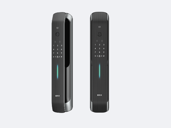 這是一款推拉式生物識(shí)別觸摸屏智能鎖。