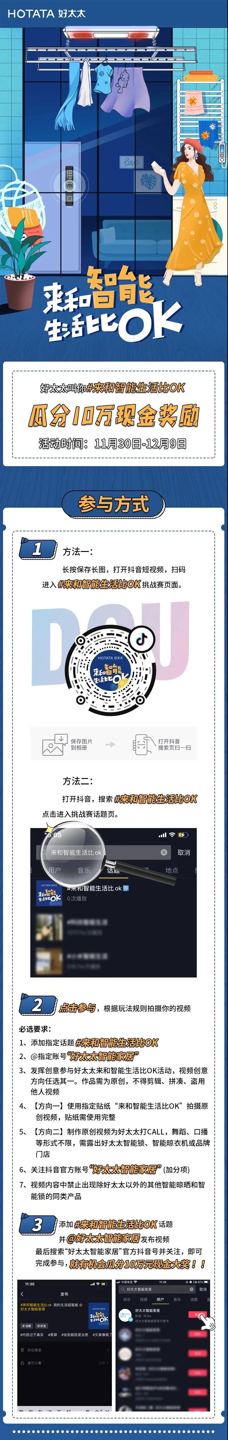 即日—12月9日,mk体育-MKsports官网智能家居將發(fā)起抖音全民任務(wù)挑戰(zhàn)賽,用戶通過在抖音上搜索【來和智能生活比OK】參與活動,就有機(jī)會瓜分10萬現(xiàn)金大獎(心動)!