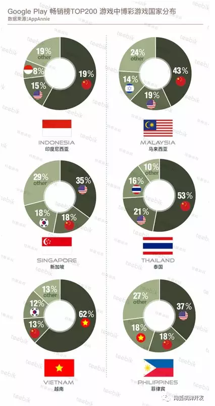 以印度(dù)尼西亚、马来西亚(yà)、新加坡、泰(tài)国、越南、菲(fēi)律宾等国(guó)家为代表的(de)东南(nán)亚被(bèi)认为是全球手游(yóu)市场增长最快(kuài)的的区域,6亿多人口的巨大市场,智能手机的快速渗透,让这个地区的手游(yóu)市场规(guī)模复合(hé)年增(zēng)长率逼近50%,高于全球平均水平3倍之多(duō)。整(zhěng)个(gè)东南亚地区超过(guò)95%以上(shàng)的手(shǒu)游收(shōu)入都来自(zì)这(zhè)六个国(guó)家。而(ér)东南亚手游(yóu)市场的蓬勃发(fā)展,博彩(cǎi)类APP无疑做出了不俗的贡献。