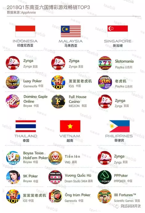 AppAnnieGoogle Play 畅销游戏TOP200显示,目前活跃在东(dōng)南亚市场(chǎng)上的棋牌(pái)游戏主要来自中国和(hé)美国,而对(duì)于(yú)独特的越南市场,本土的棋牌游戏则占(zhàn)据了主要市场份(fèn)额。除越南市场外,其他五国的棋(qí)牌游戏唯美国Zynga公司的(de)《Zynga德州扑克(kè)》、中国(guó)博雅的《博雅(yǎ)德州(zhōu)扑克》、IGS的《发发发老(lǎo)虎机》马(mǎ)首是瞻,越南市场(chǎng)上(shàng)受欢(huān)迎的棋牌(pái)游戏则基本都来自本土(tǔ)公司。