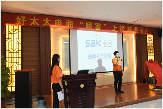 會議上,廣東好太太電商中心運營組長張杰先生對曬客品牌視覺策略進行講解,saik的logo極具創(chuàng)造性,saik中的「i」上的圖形寓意陽光,整體采用科技感的湖藍色調(diào),代表著曬客年輕、時尚、智能、科技的品牌調(diào)性,曬客只有一個原則:至繁歸于至簡。