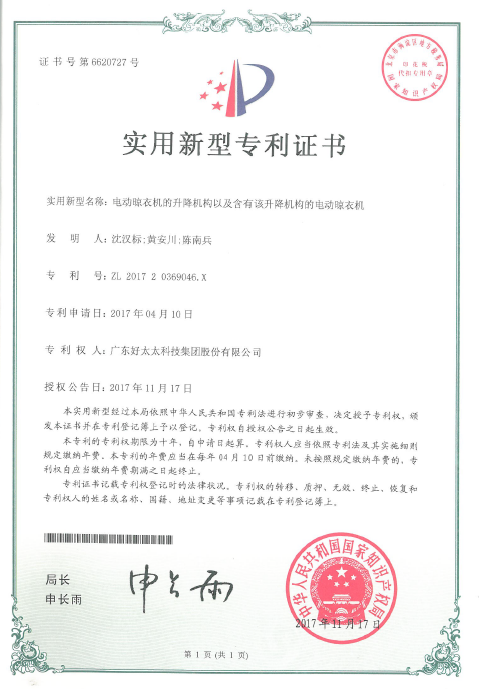 好太太GW-181 智尊系列不僅功能超強(qiáng),承重力也超乎想象,除了能一次掛滿我?guī)Щ貋?lái)的大量衣服,再加上全家人的衣服、被子一起晾曬也毫無(wú)壓力。原來(lái)機(jī)身藏著好太太自主研發(fā)的動(dòng)力系統(tǒng),有專(zhuān)利技術(shù)認(rèn)證,產(chǎn)品品質(zhì)有保障。