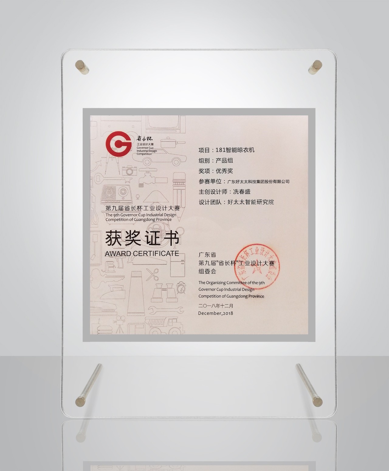 由廣東省人民政府工業(yè)和信息化廳主辦,廣東省工業(yè)設(shè)計協(xié)會承辦的第九屆“省長杯”工業(yè)設(shè)計大賽經(jīng)過約4個月的賽程已經(jīng)結(jié)束。本屆“省長杯”在全省21個地市,15個分賽區(qū)充分發(fā)動,從破紀錄的32051件參賽作品中,選出513件決賽作品,并最終決出30件獲獎作品和30個單項獎。其中,好太太智尊系列GW-181憑借創(chuàng)新的產(chǎn)品工業(yè)設(shè)計脫穎而出,榮獲“省長杯”工業(yè)設(shè)計大賽獎。