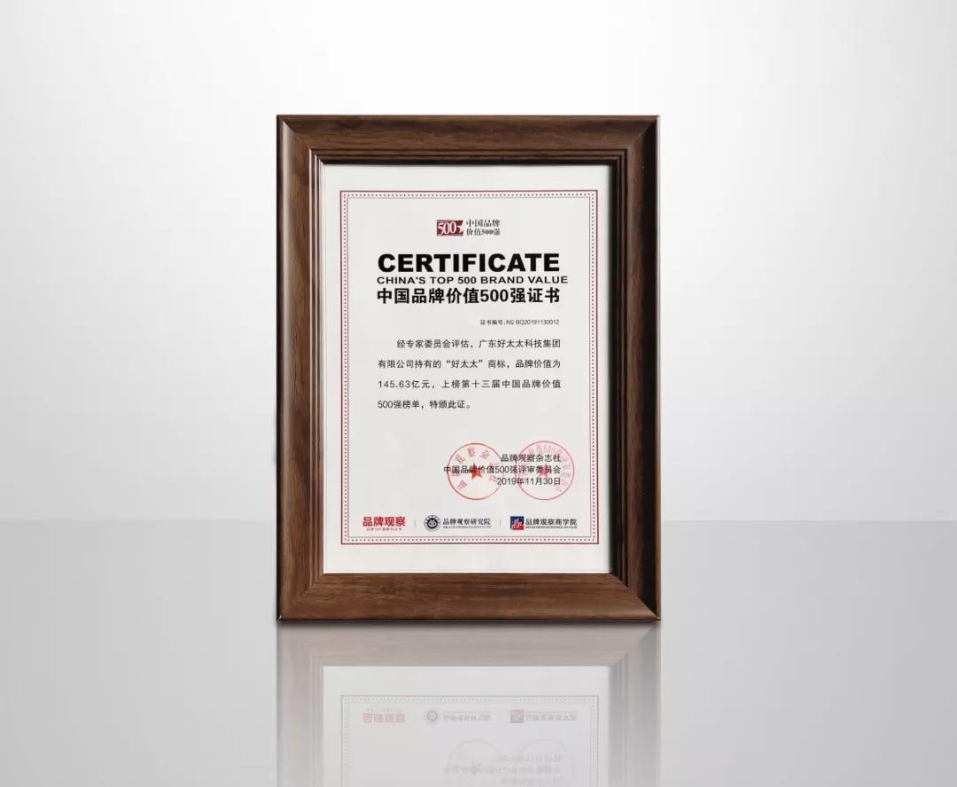 好太太在此次大會(huì)中上榜第十三屆中國(guó)價(jià)值500強(qiáng)榜單,品牌價(jià)值為145.63億元。