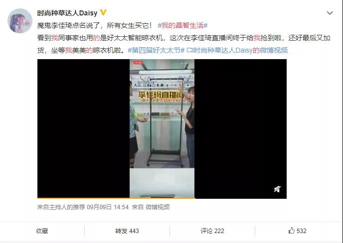 一年一度的好太太節(jié),作為“她力量”的擴聲器,得到了社會各界的支持。8月末,好太太品牌代言人-劉濤率先發(fā)聲,親啟好太太節(jié)直播季,快速引爆好太太節(jié)影響力。隨后,汪涵、謝娜、李佳琦、林依輪、李好、設(shè)計師阿爽等一眾明星大咖在直播間輪番為好太太節(jié)打call。