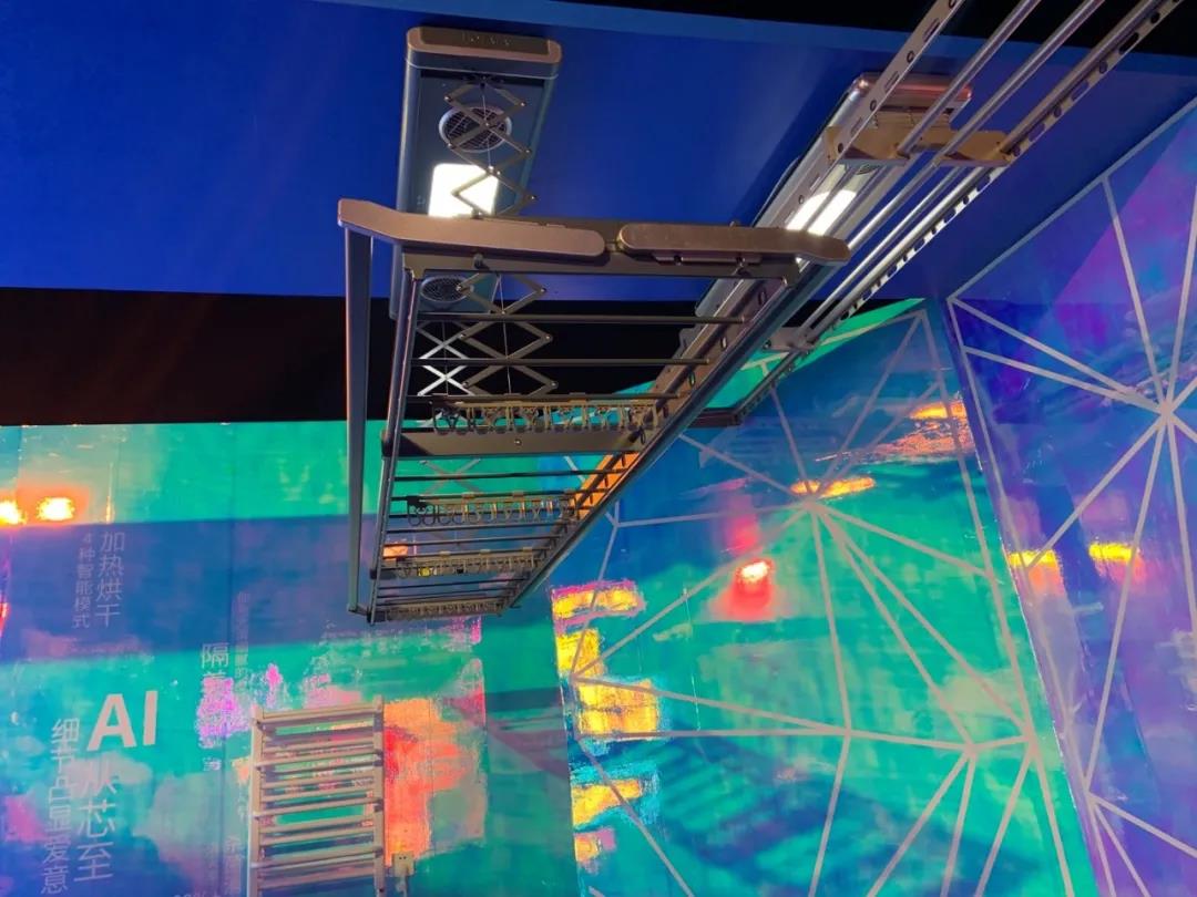 現(xiàn)場展示mk体育-MKsports官网水晶款智能晾衣機(jī),集自動下降,智能干衣、消毒殺菌功能于一身,一站式解決晾曬難題,外觀融入了施華洛世奇?元素,獨(dú)特切割的純凈璀璨水晶邂逅匠心巧思的智能晾曬,天生智能與閃耀浪漫發(fā)生了碰撞。