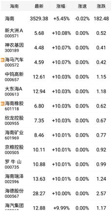 海南(nán)板(bǎn)块股票一字涨停