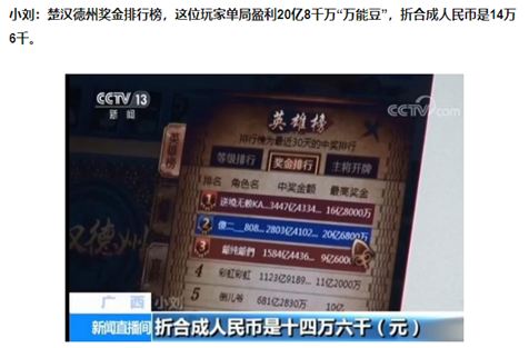 据天辰娱乐了解,今年2月央视记者通过调(diào)查发(fā)现,联众旗下游戏平台《楚汉德州》和《坚豆扑克》中(zhōng)可能(néng)存在网络**行为,一局输赢(yíng)高达十(shí)几万。随后,北京开展网络游戏专项整治,责令(lìng)联众公司立即停(tíng)止“坚(jiān)豆扑克”等测试服务,查封与“币(bì)商”交易(yì)账号,将涉赌(dǔ)犯罪(zuì)问题移交公安部门处理。