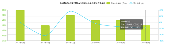 另外,据天辰娱乐了解(jiě),百搭(dā)网(wǎng)络旗下的主要(yào)盈利(lì)产品《阿(ā)拉斗(dòu)牛》运(yùn)营数据自去年(nián)以来(lái)是呈下降趋势的。3月其月度独立设备数仅3万台,为去年10月以来(lái)的最低水(shuǐ)平。