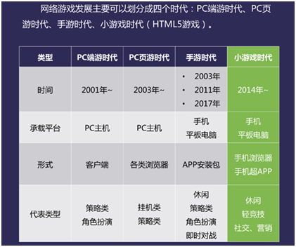 白皮书中对2000年以来(lái)中国网络游戏的发展做了划分和介(jiè)绍(shào)对比,从图中(zhōng)我(wǒ)们可以(yǐ)发现,网络游戏正朝着轻量化、移动化、便(biàn)捷化的方向发展,小游戏(xì)的火爆(bào),也不过是顺势(shì)而成。根据微信小游戏平(píng)台显示,棋(qí)牌游戏(xì)在其中(zhōng)占比(bǐ)23.6%。