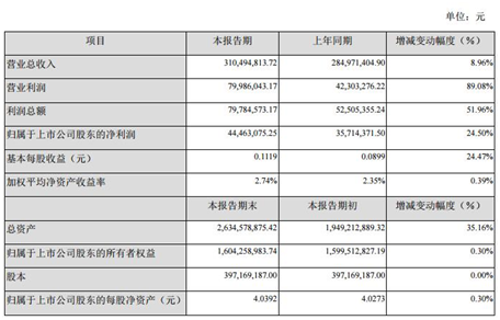 近日,上海姚记扑克公布了2018年上半年(nián)度(dù)公司业(yè)绩快报。从报(bào)表中可以看出,2018年上半年,姚记扑克实现营业收入3.1亿(yì)元,较上年同期增长(zhǎng)8.96%;营业利润7999万元,较上年同期(qī)增长(zhǎng)89.08%,利润总额7978万元,较上年同期增长51.96%;归属于上市公司股东的(de)净利润4446万元,较上年同(tóng)期增长24.5%。