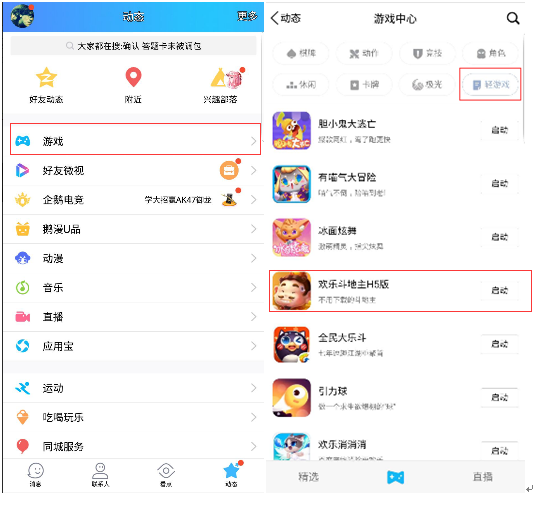 而在移动QQ和QQ空间,腾(téng)讯也针对H5棋牌(pái)游戏(xì)做了(le)深入布局,在动态和QQ空间都分别加了游戏入(rù)口。