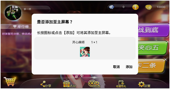 添加H5棋牌游戏(xì)至手(shǒu)机主屏幕