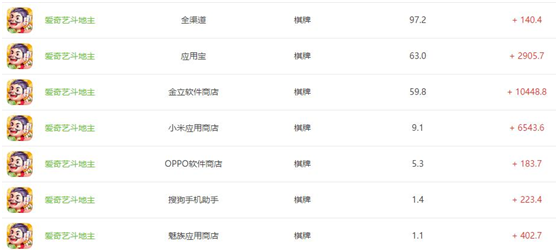 根据《爱奇(qí)艺斗地(dì)主(zhǔ)》的用户渠道(dào)来(lái)源显(xiǎn)示(shì),7月它的各个渠道(dào)都实现了不同程(chéng)度的(de)增长(zhǎng)。其(qí)中,腾讯应(yīng)用(yòng)宝上(shàng)的用户增加了63万,环比(bǐ)增长达到了2905.7%。而在(zài)其他手(shǒu)机厂商的应用(yòng)商(shāng)店里,金立软件商店(diàn)的(de)增长幅度最大,环(huán)比增幅为(wéi)10448.8%。