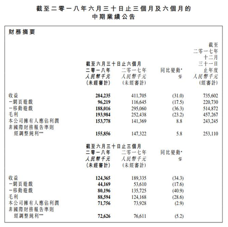 据报告中所示信息,截(jié)止到2018年6月末,博雅互动(dòng)上(shàng)半(bàn)年的总营收为2.84亿(yì)元,与去年同期相比,下降(jiàng)了31%。不过(guò),虽(suī)然旗下网页游戏和移动游戏的营收(shōu)都有所下(xià)降(jiàng),上半年的同期(qī)净利却有约(yuē)1.54亿元,同比增长了8.8%。