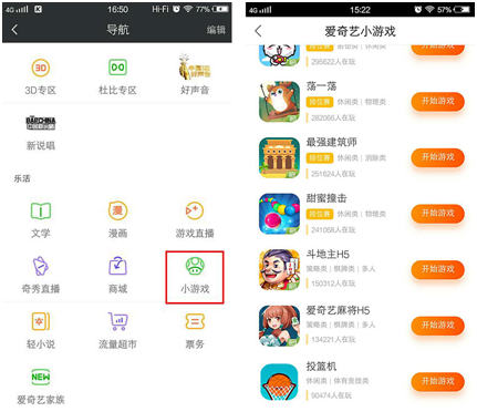 近日,天辰娱乐发现,爱奇艺已经在自(zì)己的(de)APP内增加了小游戏入口。用(yòng)户(hù)可以点击“小游(yóu)戏(xì)”按钮直接进入,目(mù)前爱奇艺小游(yóu)戏平台已有13款游(yóu)戏,其中,包(bāo)括棋牌类游(yóu)戏《斗兽棋》、《爱奇艺斗地主H5》和《爱奇艺麻(má)将(jiāng)H5》三款。
