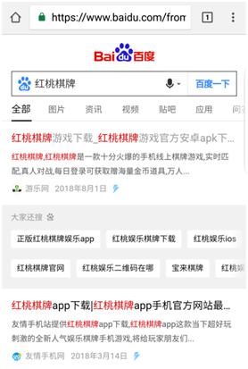 简单来说,就(jiù)是(shì)将自己的下载(zǎi)包(bāo)和游戏介绍等资料,以其他检索量(liàng)高(gāo)的棋牌游(yóu)戏名义(yì)上传(chuán)到各大APP分发下载站。打个(gè)比方,用户在百度搜索(suǒ)“红桃(táo)棋牌”,在(zài)下载页(yè)的ICON和游戏介绍,都是“红桃棋牌”的信息,但(dàn)下载(zǎi)安装包则是(shì)自(zì)己的(de)APP。