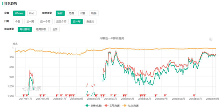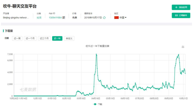 从七麦数据提供的这两款软件表现来看,在过(guò)去(qù)一年里,《闲聊(liáo)》在App Store的累积下载量达到了264万,单日下载(zǎi)量稳定在2万(wàn)以上(shàng);《吹牛(niú)》的累计下载量在40万左(zuǒ)右。而在App Store的排名上,这两款软件的峰(fēng)值也出现在今年4月(yuè)和(hé)9月底。巧合(hé)的是,这两个时间点正是今(jīn)年各大棋牌游戏公(gōng)司被约谈、整改和国内德州系(xì)棋牌游戏纷纷(fēn)关闭的时候。