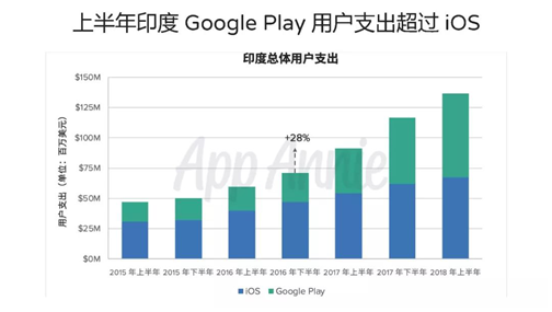 一般来讲,优(yōu)质的付费用(yòng)户来(lái)源主要是(shì)ioses端(duān),不过早在2016年开始,印度手游市场上安卓端的付费就开始上涨(zhǎng),到2018年上半年,安卓端用(yòng)户支出已经超过ioses端,占比超过(guò)一(yī)半以上(shàng)。而随着智能手(shǒu)机的普(pǔ)及,用户接触到游戏的数量将进一步增(zēng)加。