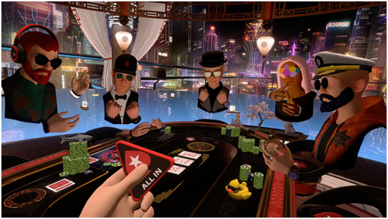 与Lucky VR合作开发的PokerStars VR专注于有趣的游戏玩法(fǎ)、交互性和(hé)社交互动,允许用户与其他玩家(jiā)聊天,使用语音(yīn)命令,通(tōng)过Twitch流媒体,并(bìng)使用护卡(kǎ)、信号枪、烟花、宠物鸭子和驴子(zǐ)等道(dào)具进(jìn)行游(yóu)戏。