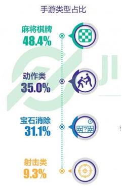 此(cǐ)外,从(cóng)具体的(de)游戏类型来看,麻将棋(qí)牌游戏在所有(yǒu)手游类型(xíng)中也是这类人群在(zài)休闲娱乐(lè)时(shí)的主(zhǔ)要选择(zé),在所有手游类型占比(bǐ)48.4%,远(yuǎn)远高(gāo)于占(zhàn)比第二的动作类手游。