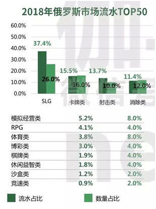 而(ér)在俄罗斯,棋牌(pái)、博彩类游戏也(yě)占有一(yī)定的比例。报告(gào)中显示,在2018年俄罗斯市(shì)场流水(shuǐ)TOP50中,博彩类(lèi)和棋牌类游戏产(chǎn)品的数量占比相(xiàng)同的情(qíng)况下,博(bó)彩游戏的流(liú)水更(gèng)高,为(wéi)3.0%,而棋(qí)牌游戏的占比略低,为1.9%。早前在对博雅前海外负责人庞(páng)磊的采访(fǎng)中他也(yě)表示,看好俄罗斯的德州扑克(kè)市场。