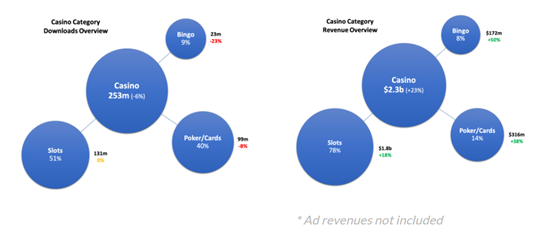 如果说2018年是国内棋牌行业的寒冬,海外博弈(yì)类(lèi)游戏的数据,则展示(shì)出了惊人的增长趋势。在未计(jì)入中日韩三国市(shì)场数(shù)据的(de)情况下,分析各国 Top 500 游戏,社交博弈类游戏(xì)的收(shōu)入在 23 亿(yì)美元,较 2017 年(nián)同(tóng)比增(zēng)长 23%。旗下的 3 个细分(fèn)品类宾果、棋牌和老虎(hǔ)机游戏,收入在 2018 年也(yě)都实现了(le)双位数的同比增长(zhǎng)。天辰娱乐一直说,棋牌行业要求变,海(hǎi)外市场绝对不容忽视。