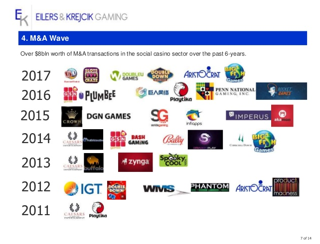 2011-2017 年社(shè)交(jiāo)博弈类行业(yè)并购(gòu)案 | 来源:EILERS&KREJCIK