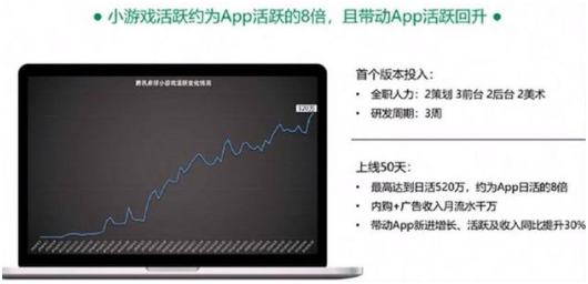 一是,小游戏产品本身的(de)原因,休闲类的游戏(xì)产品(pǐn)用户付费能力(lì)让人堪忧。日活520万的《腾讯(xùn)桌(zhuō)球》月流水才(cái)堪堪过(guò)千万。而据网(wǎng)狐了解,棋牌行业日活过5万的产品,月流水(shuǐ)破千万的产品也不少。