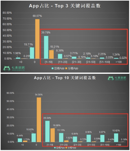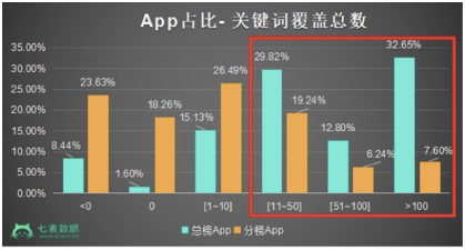 例如,在覆盖总(zǒng)量变化的几个区间中,仅进(jìn)入分类榜(bǎng)的App关键词覆(fù)盖数降低、不变、少(shǎo)量增加(1~10)的比例更多;而总(zǒng)榜App关(guān)键词覆盖总量增加超(chāo)过10以上的App比例呈逐渐增多趋势。