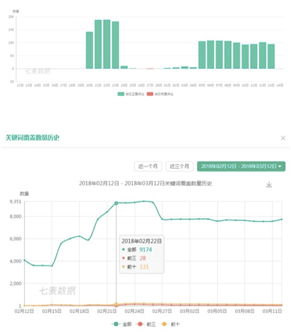 下面举一个比较明显(xiǎn)的(de)例(lì)子(zǐ),大家可以看(kàn)一下这(zhè)款产品的(de)评论和关键词覆盖数量(liàng)变动情况。
