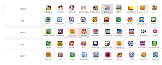 《Bingo Party》和《Bingo Blitz》在多(duō)个国家进入前十名