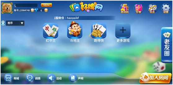 据天辰娱乐了解,中青宝旗下棋牌目前有《好牌网》和(hé)《老友麻将》两(liǎng)大平台。其中《好牌网》主打大(dà)厅式通用棋牌(pái);《老友麻将》则主打地方麻将(jiāng);包括:《老友(yǒu)福建麻将》、《老友广东麻将》、《老友湖南(nán)麻将》、《老友(yǒu)胡吧麻将》、《老友云南麻将》。两大平台都只有房卡模式,没有金(jīn)币玩法。