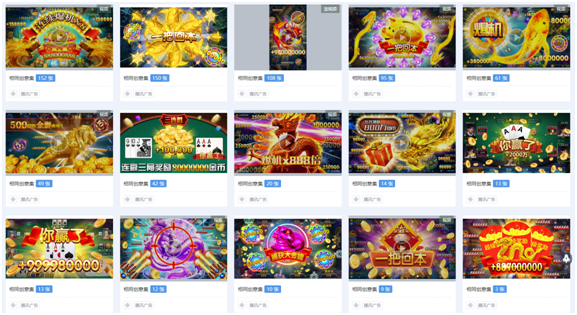广告文案方面,850棋牌的广告素材中,出现频率最高的(de)关键词是:金币、捕鱼、一个亿、半小时(shí)、太爽了……以制(zhì)造稀缺(quē)、引导尝试、震惊感叹为主要套(tào)路。
