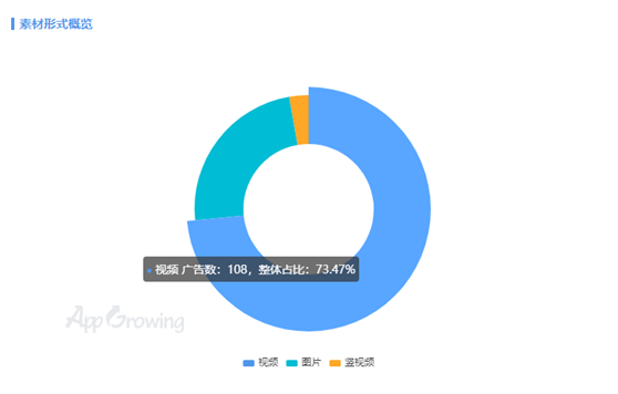 但从最近30天的(de)广告投放来看(kàn),《850棋牌(pái)金蟾捕鱼》的视频广(guǎng)告素材的占比越(yuè)来越高。据网(wǎng)狐了解到(dào)的数据,最近30天(tiān),《850棋牌金蟾捕鱼》共投放广告素材147组(zǔ),其(qí)中(zhōng)视频广告(gào)107组,占比73.47%;竖视屏广告4组,占比2.72%;图片广告(gào)35组,仅占比23.81%。