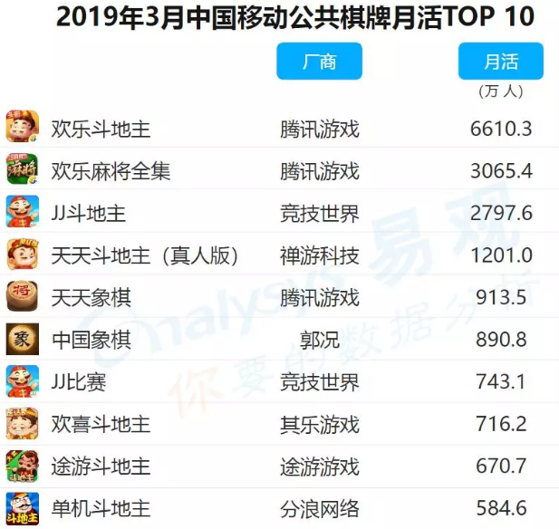 在公共(gòng)棋牌(pái)市场,因为拥有全国通行(háng)的玩法,斗地(dì)主成为了最(zuì)核(hé)心的品类,也正因为此(cǐ),公共棋牌(pái)市场(chǎng)亦体现出了极强的同质化特(tè)征。腾(téng)讯游戏(xì)和竞技世界以外的其他厂商,不仅(jǐn)要(yào)面临CP厂商对用户的争夺,还要面(miàn)临各大安卓渠道自有产(chǎn)品的堵截(jié),保持(chí)产品和业务的(de)持续运营和减缓(huǎn)现有用户流(liú)失是第一诉求。