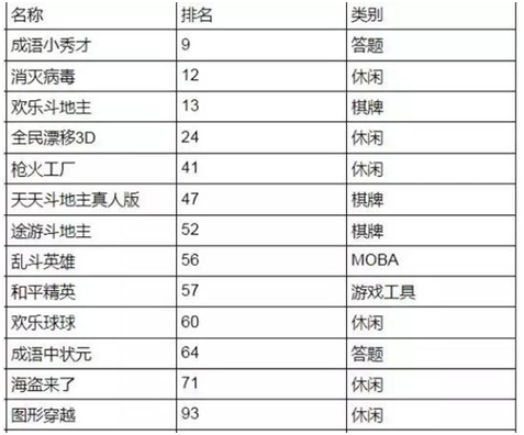 而(ér)仅从游戏类别(bié)来看的话,棋牌类游戏的排(pái)名可以说相当靠前。虽然(rán)《消灭病毒》和《全民漂移3D》等休闲游戏(xì)一样稳定位列头部,但综合上榜次数和排名而言,数量上处于中部位置(zhì)的棋牌整体(tǐ)排(pái)名偏高。而阿(ā)拉丁发布的《2019年上半年小程序(xù)白皮书(shū)》显示,2019年(nián)上半年始终保持TOP100的小游戏中,5款中2款为休闲游戏(xì),3款(kuǎn)为棋牌游(yóu)戏。