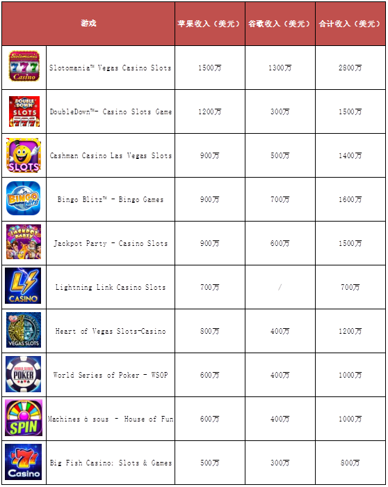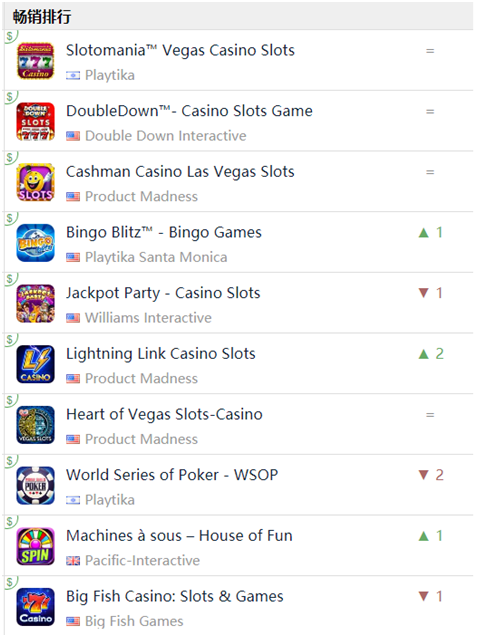 而(ér)且严格意义上来说,这仅是美国棋牌(pái)市场的冰山一角(jiǎo)。从(cóng)榜单的游(yóu)戏类(lèi)型不难看(kàn)出(chū),大(dà)部(bù)分(fèn)游(yóu)戏都是老虎机类游戏,牌(pái)类游戏(xì)仅(jǐn)有一款《World Series of Poker》,巨大(dà)的棋牌市场潜(qián)力仍然有待挖掘。