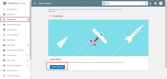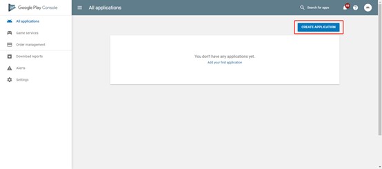 进入Google Play管理页面,点击右(yòu)上(shàng)角创建应用