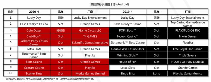 作(zuò)为移动游戏市场的重要(yào)品类,slots游戏在2020年(nián)第四季度已成为美国手游市场(chǎng)中营收第(dì)二高的品类。其中一款网赚游戏《Lucky Day》“踩”在了所有Slots游戏的(de)头顶,连续两年(nián)同期(4月)都霸占美国slots游(yóu)戏androids榜首的位置。