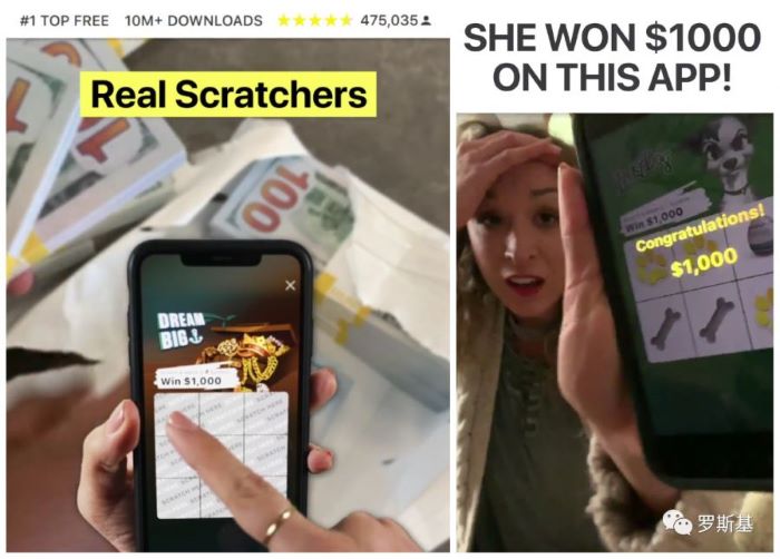 除了出手阔(kuò)绰的(de)“撒(sā)钱”方(fāng)式和优秀的游戏(xì)质量,《Lucky Day》在买量上也毫(háo)不手软(ruǎn)。广告(gào)素材更换频(pín)繁(fán)且投放的数(shù)量高,前(qián)三投放渠道分(fèn)别为Instagram,Facebook,以及Audience Metwork,投放(fàng)素材以视频为(wéi)主,广告中包含大量的真钞,以及得奖后兴奋的人(rén),广(guǎng)告所(suǒ)带来(lái)的丰富奖励(lì)让玩家的沉浸感得到了大幅提升。