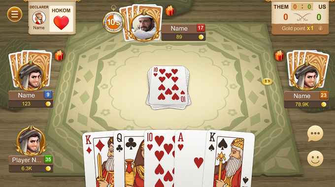 这是一款源于沙特阿(ā)拉伯的棋(qí)牌游戏,同样以合作方式(shì)进行,使用32张牌(pái)组(从标准国际套牌中(zhōng)删除(chú)所有(yǒu)的2、3、4、5、6和小丑),每个(gè)花色的卡牌从(cóng)大到小等级为A-K-Q-J-10-9-8-7。