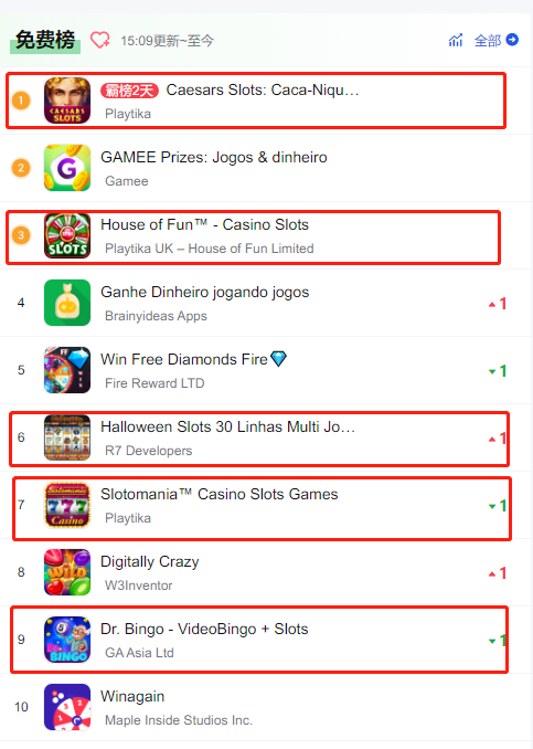 Slots类型的游戏(xì)同样是出(chū)海巴(bā)西所不能忽视的(de),巴(bā)西(xī)玩家(jiā)对于这种类型的游戏很感兴趣,在国内有着庞大的受众。下(xià)图为巴西的(de)Google Play休闲游戏榜单,从侧面可以看出(chū)Slots类型游戏在巴西有多么(me)流行。
