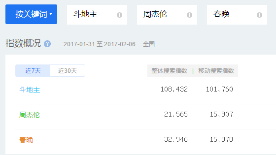 可能在很多人眼中,棋牌游戏(xì)就是LOW的代名词。可(kě)事实上,不论是身边的(de)案例,还是互联网上的大数据,都在揭示(shì)着棋(qí)牌游戏不断发展的大趋势。App Stroe实时搜索热(rè)榜中的搜索热词:斗(dòu)地主、扎金花、斗牛(niú)、德州(zhōu)扑(pū)克等基本(běn)上常年占据一半。在百度指数上的数据也非常惊人(rén),仅斗地主这一个(gè)关键(jiàn)词,日(rì)均检索量就超过100000+。可能大部分人对于100000+没什么概念,与(yǔ)之相对应(yīng)的(de),“周(zhōu)杰(jié)伦(lún)”的(de)搜索(suǒ)指数为20000+,“春(chūn)晚”的(de)搜索指数为(wéi)30000+。