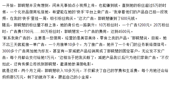粉丝数量众(zhòng)多的快手大号,广(guǎng)告(gào)费用却极为低廉