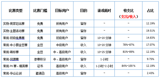 △做收入的比赛一(yī)般采(cǎi)用人满(mǎn)即开(kāi)的比赛方式,做留(liú)存的比(bǐ)赛一般采用定时开赛的比赛(sài)方式,保证成本(běn)可控。