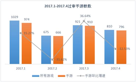 据国家(jiā)广(guǎng)电总局官网公开(kāi)的数据(jù),游戏版号审批信息已经更新到了(le)4月。而经网(wǎng)狐(微(wēi)信公众号:wanghukeji)统计,2017年4月,过审手游数量为796款,较(jiào)3月有所下降,较2月有所提(tí)升,总的来说审批速(sù)度趋于平稳(wěn)。