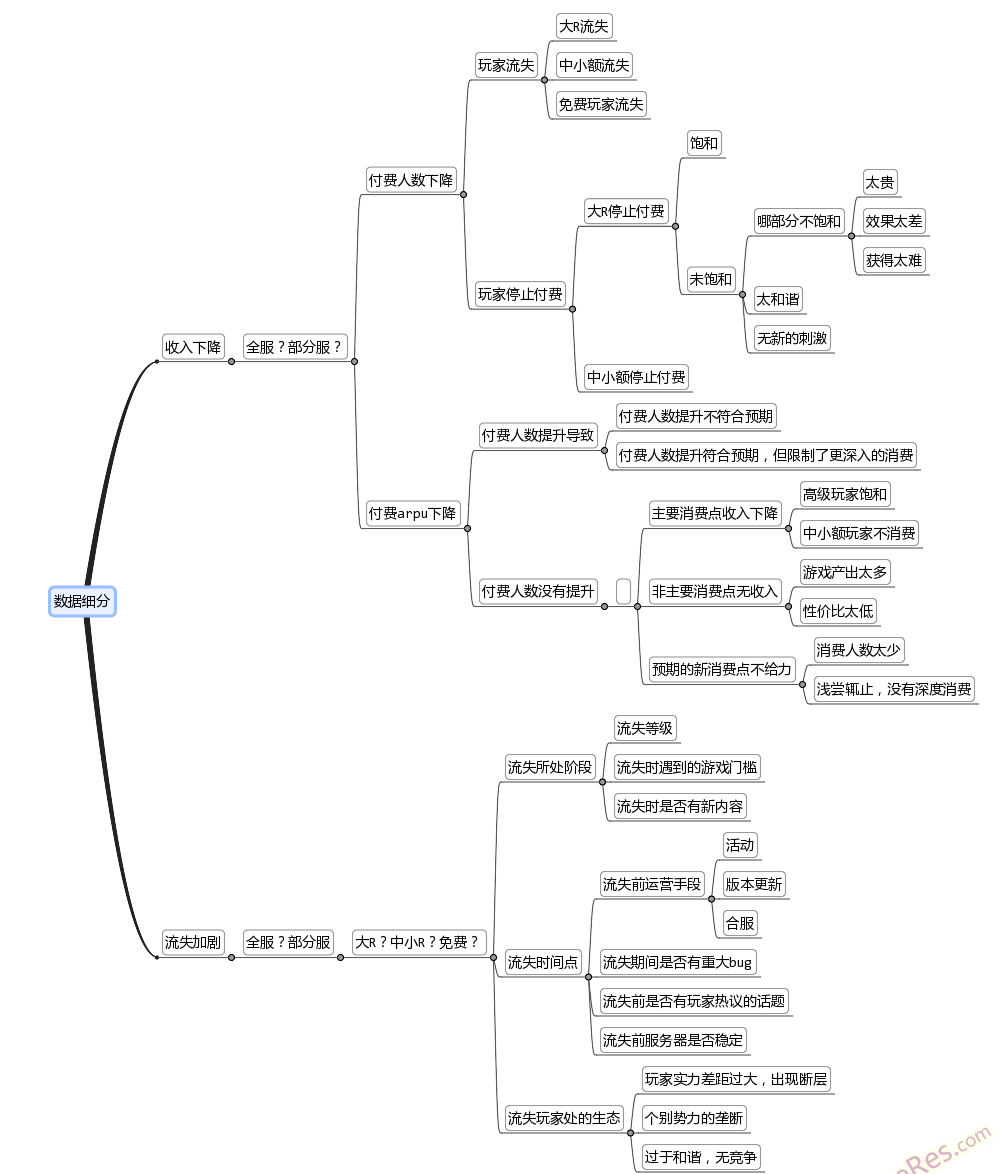 如上图中(zhōng),当我们通过数(shù)据发现游戏(xì)里的大R流失了。数据能做的(de)就已经到(dào)尽头(tóu)了(le),数据(jù)无法告诉我们流失的具体原因。数据不能(néng)告(gào)诉我们用(yòng)户是因(yīn)为公司破产而停止玩(wán)游戏,还是因为跑去(qù)玩其他(tā)游戏了(le),还(hái)是(shì)因为(wéi)玩累了(le)不想(xiǎng)玩了…数据很多时候也解释不清楚,只是通过数据的(de)不断细(xì)分,我们(men)能把问题的范(fàn)围缩小再缩小,而不是(shì)在茫茫大海(hǎi)里找一根针。所以(yǐ)再牛B的数据分析师,如果不了解产品(pǐn),不了解用户,也没(méi)用!