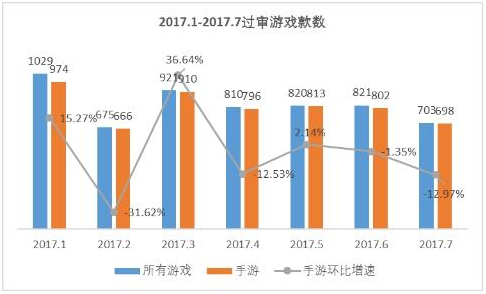 据国家(jiā)广电总局官网公(gōng)开的数据,游(yóu)戏版号(hào)审(shěn)批信息已经更新(xīn)到了7月(yuè)。而(ér)据天辰娱乐(微信公众号:wanghukeji)了解(jiě)到的信(xìn)息,2017年7月,过审(shěn)手游数量(liàng)为698款,比6月份少了104款,环比下降12.97%。